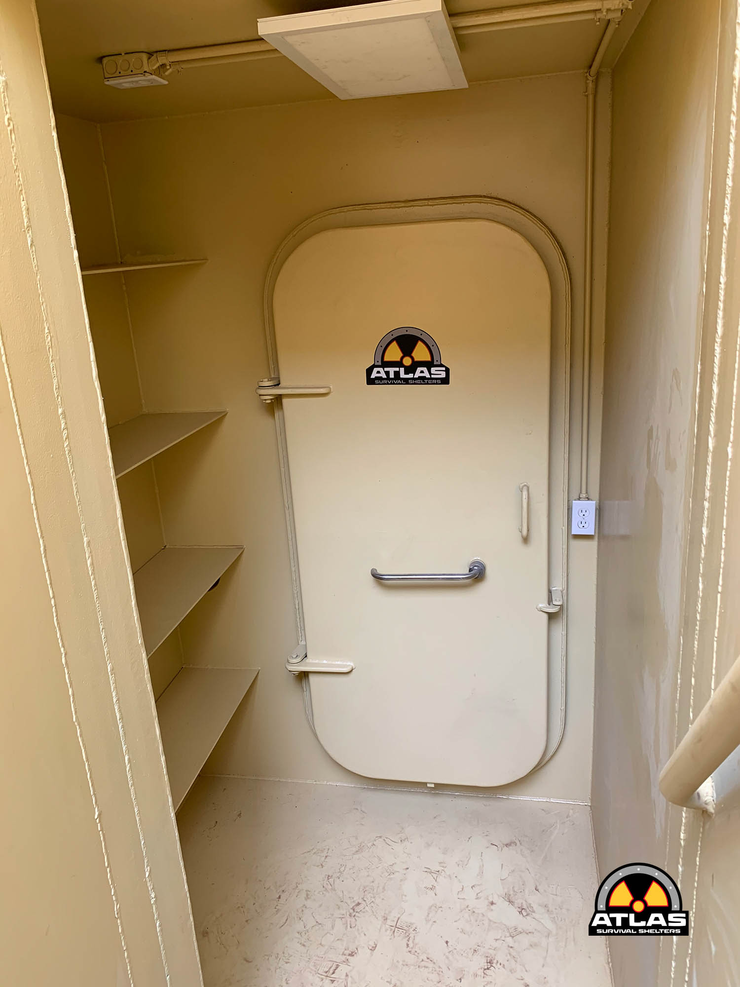 User-friendly stairs lead into the shelter, with a mudroom for keeping harmful particles outside. Marine-grade doors at the entrance ensure decontamination in the living quarters. Our doors are gas-tight and waterproof to prevent the entry of biological, chemical, and radiation threats if the shelter is not airtight.