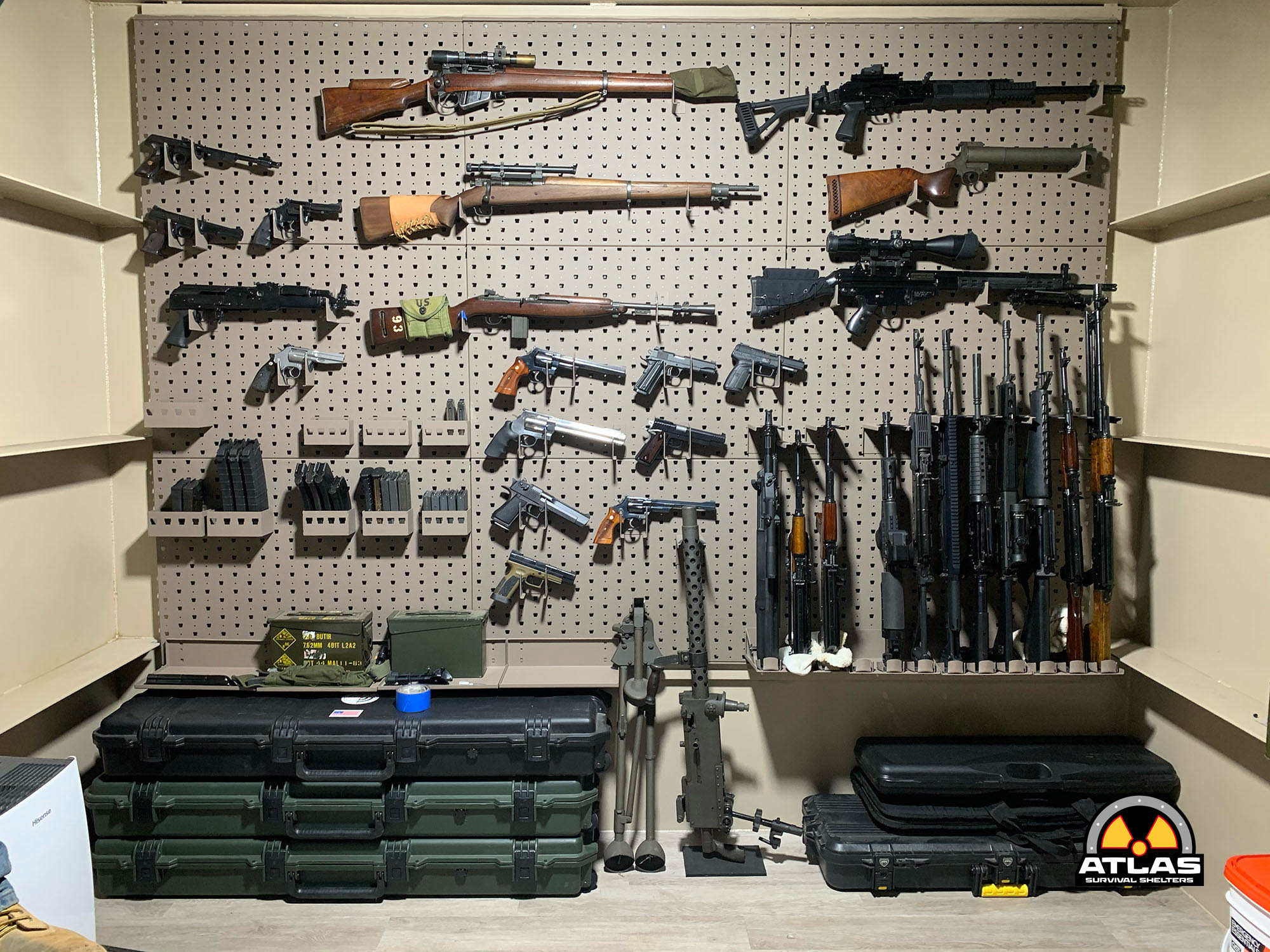 For gun enthusiasts, customize your bunker with a secure gun vault, including a Fort Knox vault to safely store your firearms. If you’re short on time to go out and shoot, consider adding a custom firing range right in your bunker for convenience and practice.